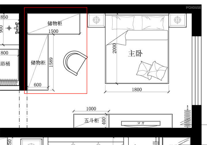 ▲卧室设计了L型储物柜,满足业主夫妻日常衣物及被子床单等床上用品的储物需求。